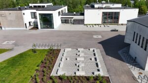 ” Leikittelin sarjan eri muodoilla, mitä kaikkea niistä saisi muodostettua. Ja tästä syntyi idea HUYK-tekstistä. Koulun rehtori piti erityisesti tästä ideasta ja paikka löytyi välituntipihalta.” – Mirja Tervonen, AFRY Oy