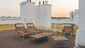 Rento ergonomia – Kallistettu selkänoja ja matala istuinkorkeus tukevat rentoa asentoasi maisemien katseluun.