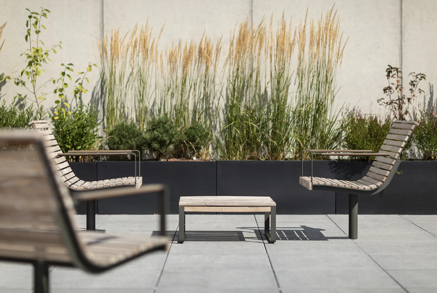 kääntyvä malli. Kokoelmaan kuuluu myös matala pöytä. Pintakäsittely koostuu korroosiosuojaavasta sinkkipinnoitteesta ja pulverimaalauksesta. Puuosat lämpökäsiteltyä saarnia, käsittelemättömänä tai öljykäsiteltynä. Käsinojat varustettu laminaattilistoin HPL (high preasure laminate).