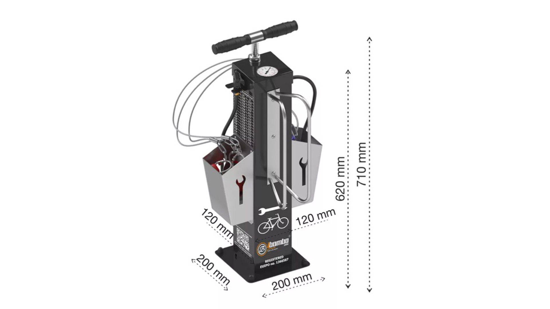 Pyöräilijöiden toivoma lisävaruste pyöräpysäköinnin kohteisiin. Pyörän pumppu ja työkalut helpottavat pienten huoltojen ja säätöjen tekemistä. Olipa kyseessä ruuvien kiristäminen, säädöt tai renkaan täyttö, korjausasemalla homma hoituu. Renkaiden ilmanpaineen säätö tai tyhjentyneen renkaan täyttö ilmalla onnistuu käsikäyttöisellä ja varmatoimisella pumpulla. Kaikki tämä on koottu yhteen toimintavarmaan pakettiin. Tutustu väreihin sivun oikeasta laidasta ”LATAA VÄRIT”