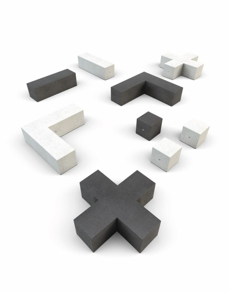 Labyrinth sarjan betonikalusteilla luot selkeitä ja tyylikkäitä tiloja yhdessäoloon. Valittavana on neljä eri muotoista ja kokoista penkkielementtiä. Suorat elementit ja kulmaelementit ovat kaksipuoleisia betonikalusteita. Lisäksi voi valita sopivan pöydän. Suurimpien elementtien paino on yli 1200 kg, joten erillistä kiinnitystä alustaan ei vaadita.